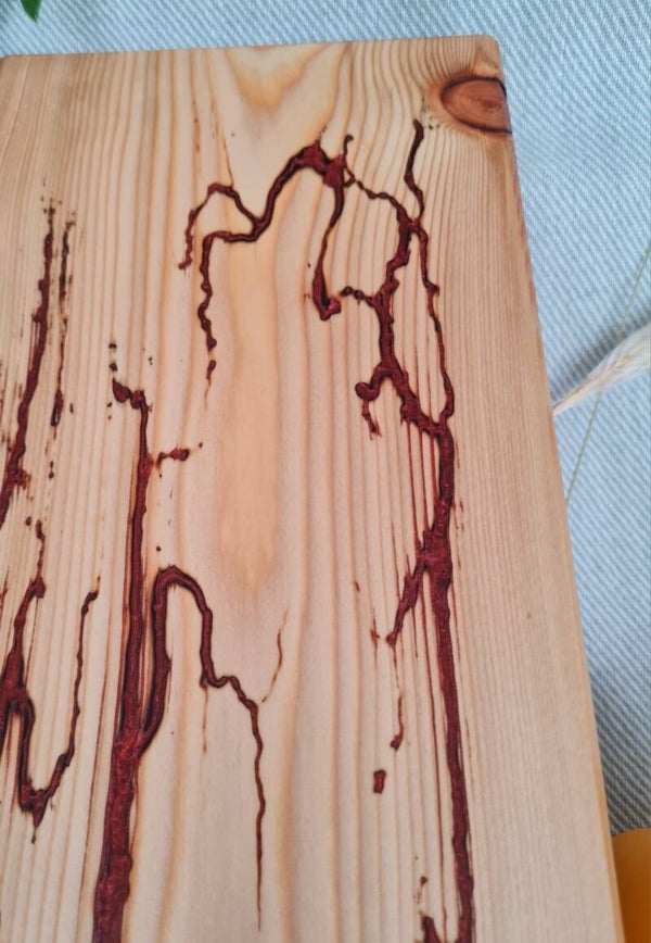 Frühstücksbrettchen mit Lichtenbergeffekt und roten Epoxidharz